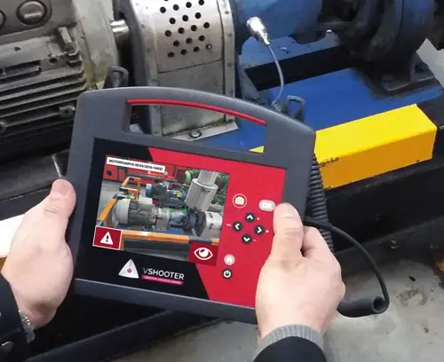 acceleration sensor, a built-in camera, a stroboscope and a pyrometer. The vibration