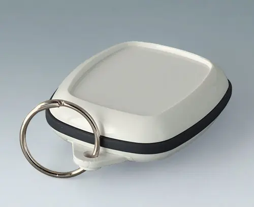Modern small enclosure specifically designed for "wearable technologies". Three-part design consisting of highly polished top and bottom parts and a matt TPV sealing ring.