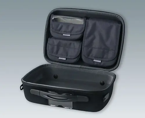 Largest version of the standard cases with a carrying handle as well as 2 eyelets for using the shoulder strap (accessory). The carry case can be fitted with your logo or nameplate for your company branding (logo window, zipper).