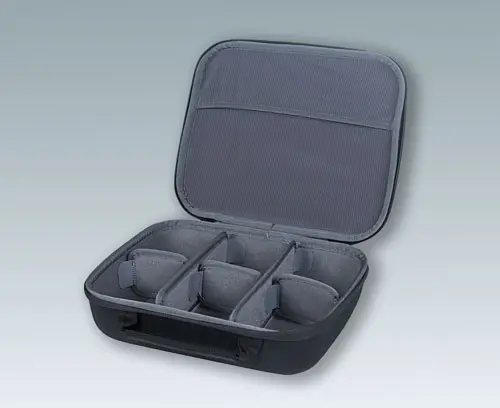 1 carry case with integrated compartment, 2 long partitions (vertical arrangement) and 3 short partitions (horizontal arrangement)
