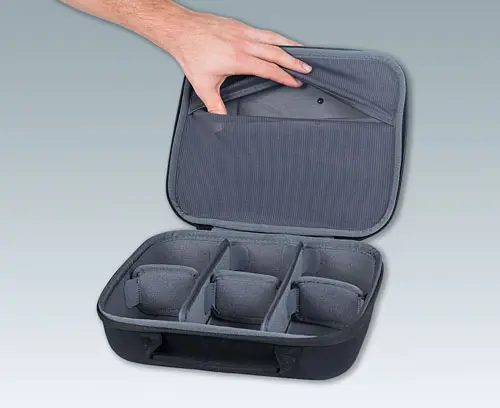 Reliable and fashionable transportation solution with a carrying handle. The carry case can be fitted with your logo or nameplate for your company branding (logo window, zipper).