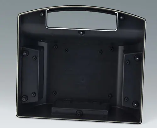Top part with recessed surface for using membrane keyboards. Attachment domes for PCBs and components in the top and bottom parts. Interface installation at the rear, for example for support arm applications, ensures orderly cable routing through enclosure connection.