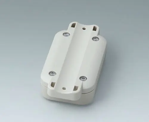 2-part plastic enclosure with flat top part. The bottom part has integrated flanges for quick wall mounting or for installation on pipes/round profiles. Robust design with proven tongue and groove connection. Screw connection with stainless steel screws and Torx drive. Fastening pillars for PCBs and components in the top and bottom parts.