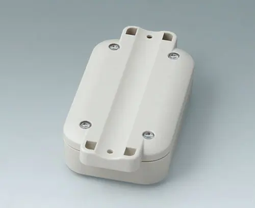 2-part plastic enclosure with flat top part. The bottom part has integrated flanges for quick wall mounting or for installation on pipes/round profiles. Robust design with proven tongue and groove connection. Screw connection with stainless steel screws and Torx drive. Fastening pillars for PCBs and components in the top and bottom parts.