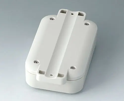 2-part plastic enclosure with flat top part. The bottom part has integrated flanges for quick wall mounting or for installation on pipes/round profiles. Robust design with proven tongue and groove connection. Screw connection with stainless steel screws and Torx drive. Fastening pillars for PCBs and components in the top and bottom parts.