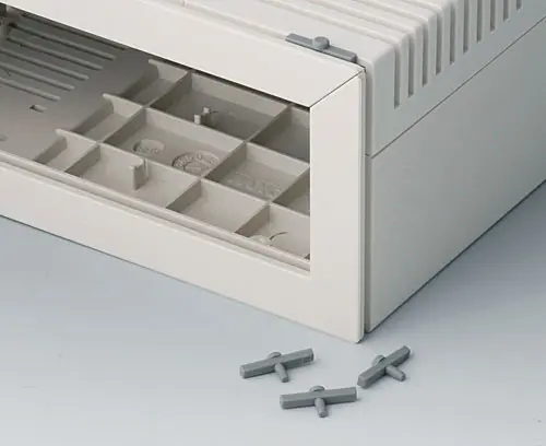 Supply 2 L-Shells, 2 side trims without ventilation (colour off-white), 2 side panels, assembly kit and 4 case-feet, 1 handle bar