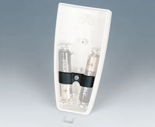 The battery holder allows practically movement-free securing of the 2 x 1.5 V micro cells (AAA), thus ensuring that the internal power supply is securely located in position.