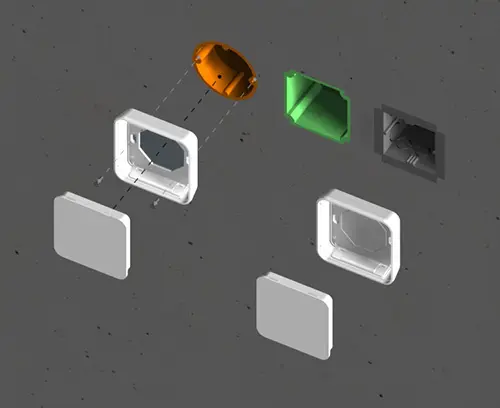 Elegant two-part plastic enclosure with flat top part. Fastening pillars for PCBs and components in the top part. Bottom part with a series of pre-moulded cut-outs for assembly on standard flush-mounted/cavity wall boxes (machining required). Secure snap-in assembly of top and bottom parts. Rational assembly of the electronics. To open the enclosures easily and practically, we recommend that you use the opening tool set, which is available as an accessory. Recessed operating area protects a membrane keyboard or glass control panel. Resin hardboard protection plate, glass panel, adhesive foil and opening tool available as accessories. Due to the high-quality material (UL 94 V-0) and the elegant design, perfect for use in modern building services technology.