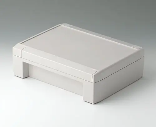 Functional, high-quality industrial enclosure – robust, waterproof and stylish. Highly polished enclosure surface with design trims for concealed screw connection outside the sealed area. The seal is already inserted in the top part. Recessed operating area in the top protects a membrane keypad or design foil.