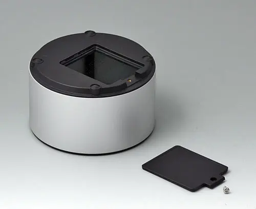 4-part enclosure for many different applications. Sturdy frame made of aluminium, glass bead-blasted and anodised. Plastic parts made of ASA+PC-FR with high UV protection and high flame resistance. Attachment domes for PCBs and components in the top and bottom parts. Top part with recessed surface to protect the membrane keyboard. Bottom part with opening and screw-down cover: practical for the use of a battery compartment or for access to the interior, e.g. for a memory card or batteries that are mounted directly on the PCB. Battery compartment kit 3 x AA with contact springs, battery clips, button cell holder and wall mounting option as accessories.