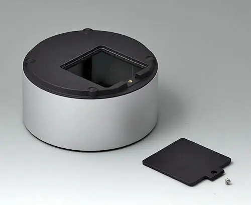 4-part enclosure for many different applications. Sturdy frame made of aluminium, glass bead-blasted and anodised. Plastic parts made of ASA+PC-FR with high UV protection and high flame resistance. Attachment domes for PCBs and components in the top and bottom parts. Top part with recessed surface to protect the membrane keyboard. Bottom part with opening and screw-down cover: practical for the use of a battery compartment or for access to the interior, e.g. for a memory card or batteries that are mounted directly on the PCB. Battery compartment kit 4 x AA with contact springs, battery clips, button cell holder and wall mounting option as accessories.