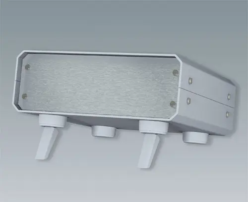 Universal case feet for all types of plastic and metal enclosures with max. 3 mm wall thickness. The tilt legs provide an ergonomic reading angle of the unit. It simply snaps into the feet section and is retractable.