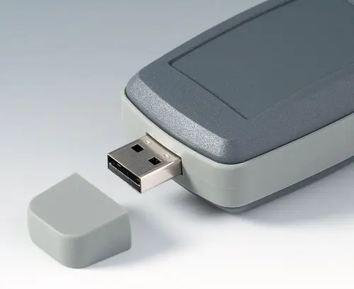 Intermediate ring EM, USB type A Assembly unit: simply insert the intermediate ring between bottom and top part and screw the case together. TPE gives a pleasant touch sensation and impact protection. USB cover as accessory.